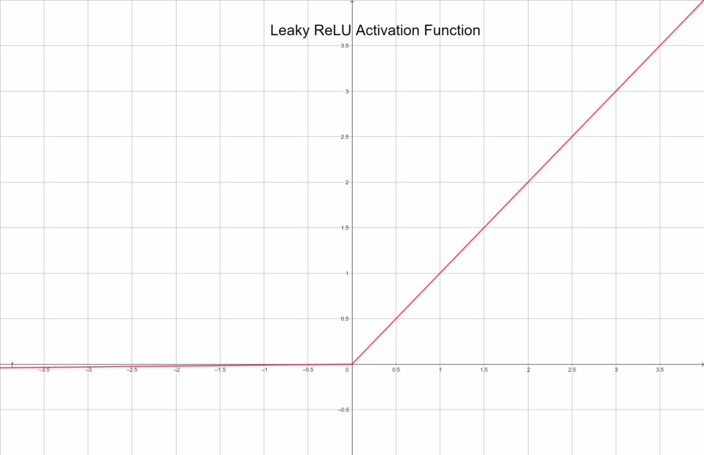 A Leaky ReLU a ReLU továbbfejlesztett változata. A különbség csupán annyi, hogy a negatív tartományban sem nulláz le teljesen, hanem egy kis arányban tovább engedi az értéket: